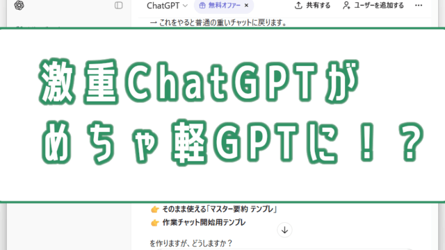 普段、ChatGPT とチャットをしていて、重くて何もできないくらいになっていたりする人におすすめです。