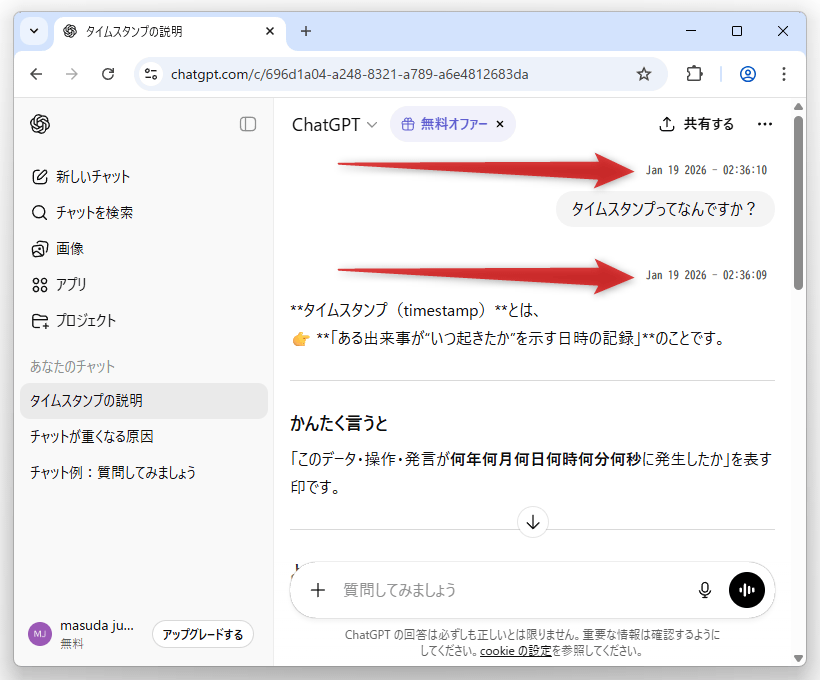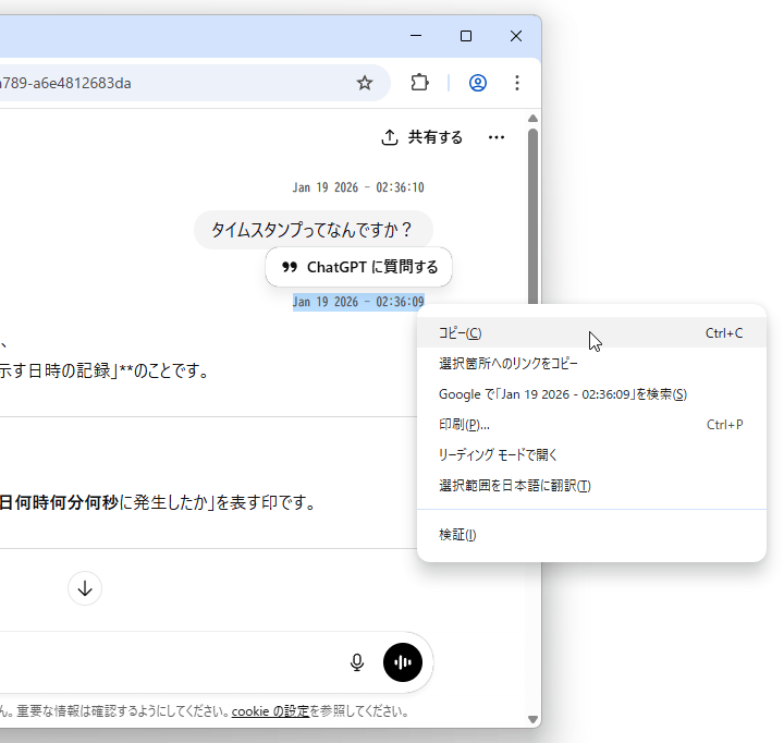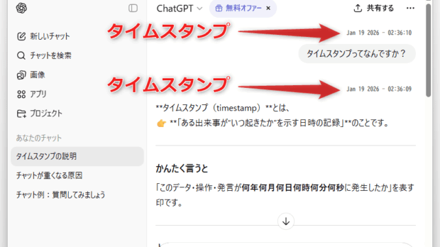 ChatGPT の各メッセージに、タイムスタンプが表示されるようになる