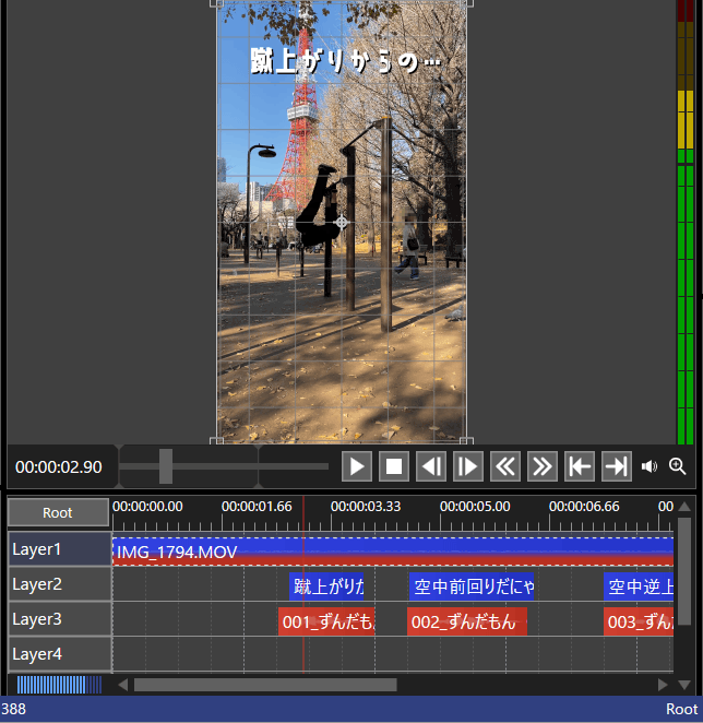 3. 動画に、テキストと音声を合成する(音声は「VOICEVOX」で作成)