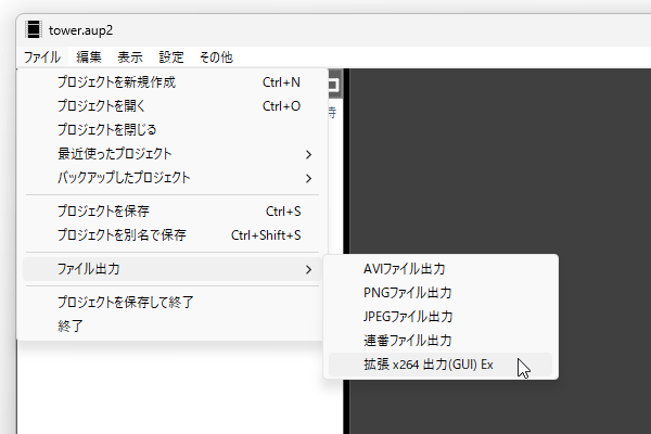 4. 出来上がった動画を、「拡張 x264 出力(GUI) Ex」経由で MP4 動画として出力